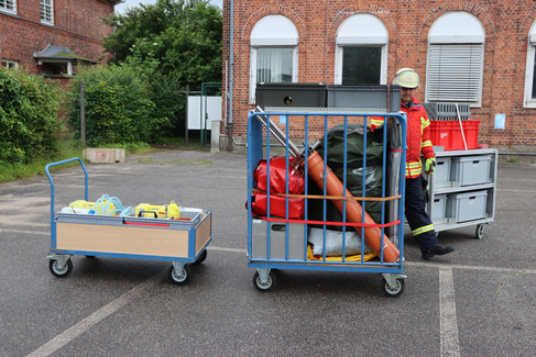 Aufgabe bei dieser Übung waren ausgetretene Gefahrstoffe der Gefahrengruppe II. Hier dürfen nur Einsatzkräfte mit Sonderausrüstung und mit anschließender Dekontamination eingesetzt werden.